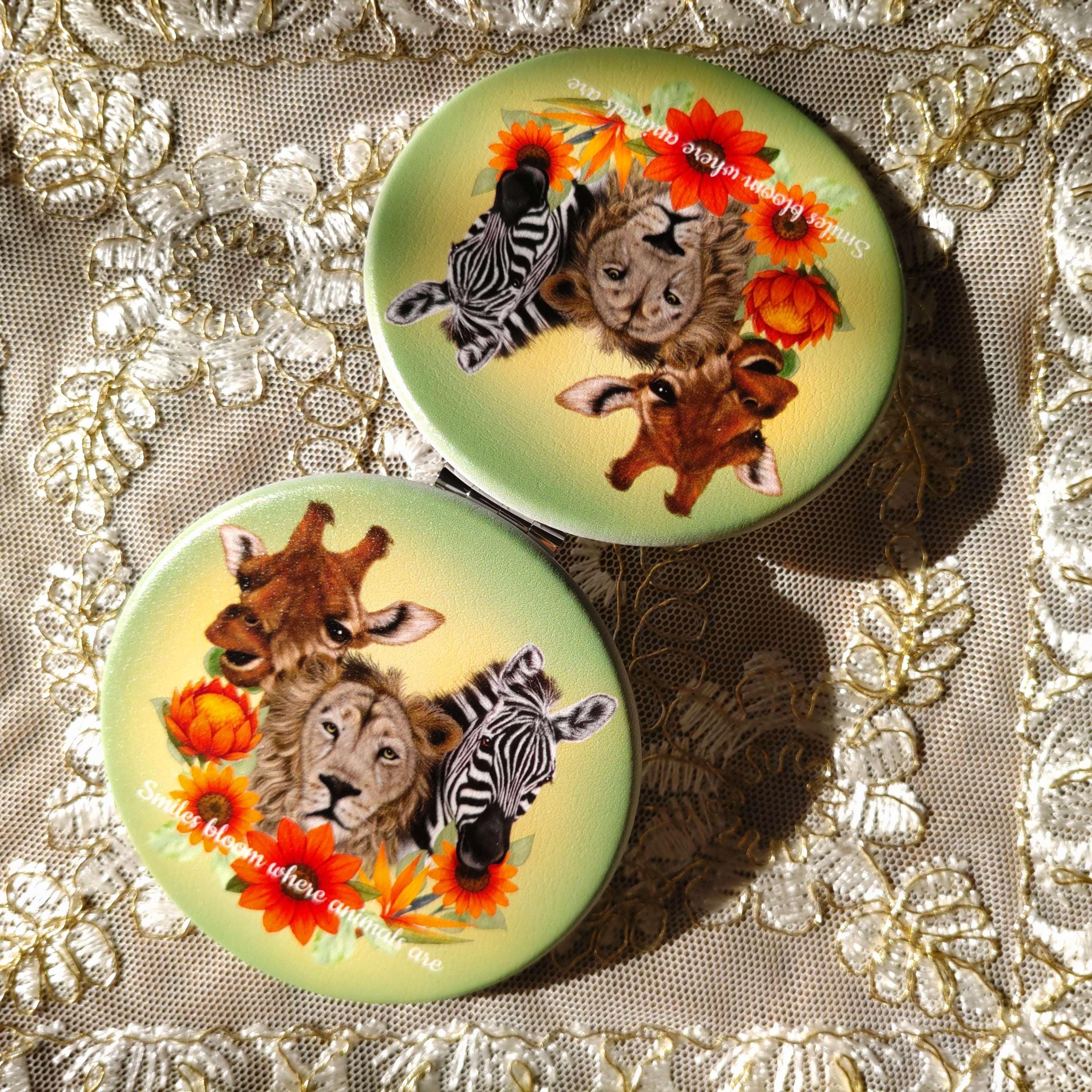 アニマルコンパクトミラー【丸型】【ライオン・キリン・シマウマ】