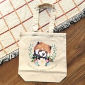見ているだけで笑顔になれるレッサーパンダを、やさしい色で描きました。