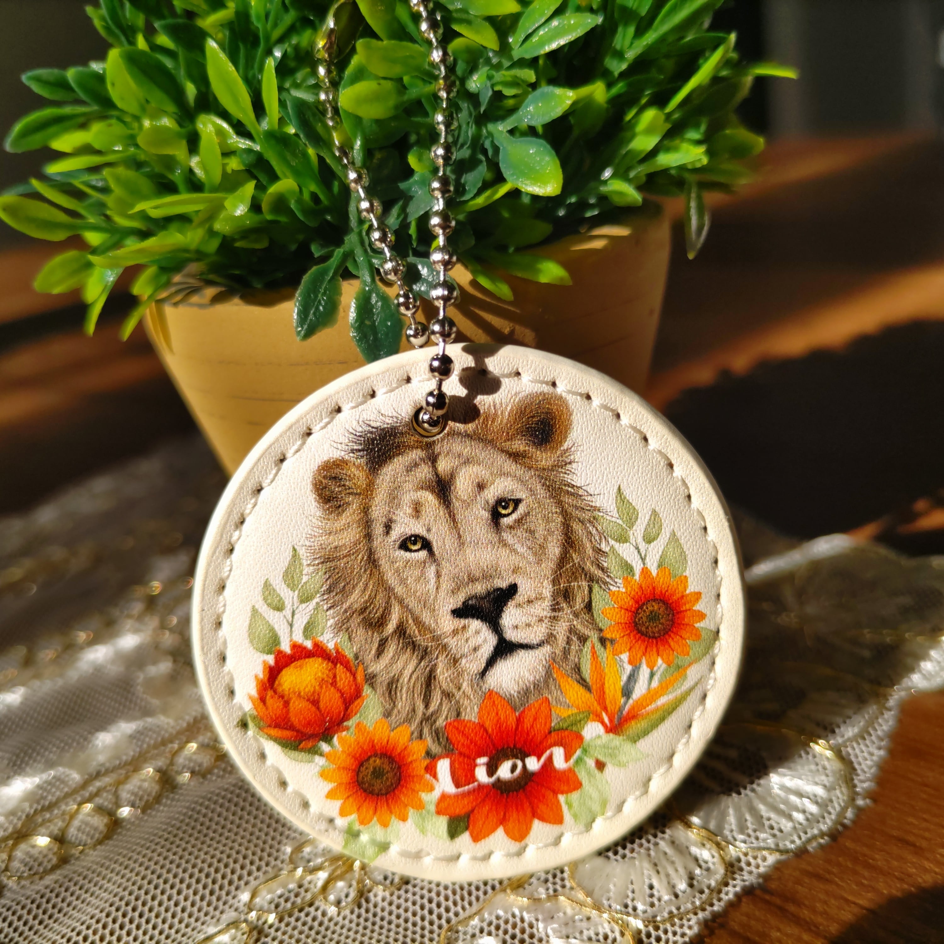 傷や汚れに強いレザー合皮を使用し、柔らかい触り心地が特徴の「円形キーホルダー」。