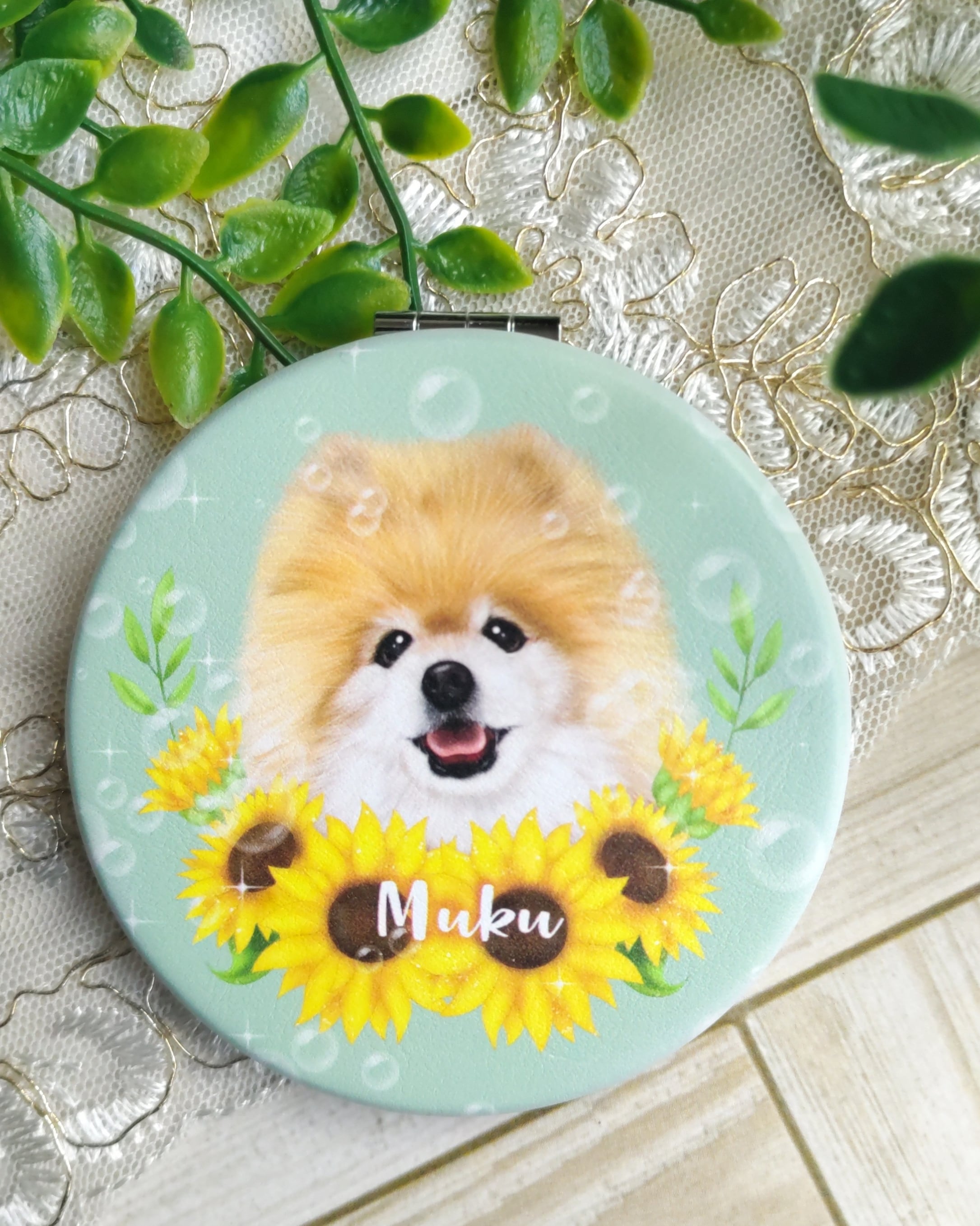 うちの子似顔絵コンパクトミラー【丸型】/ペット似顔絵/鏡