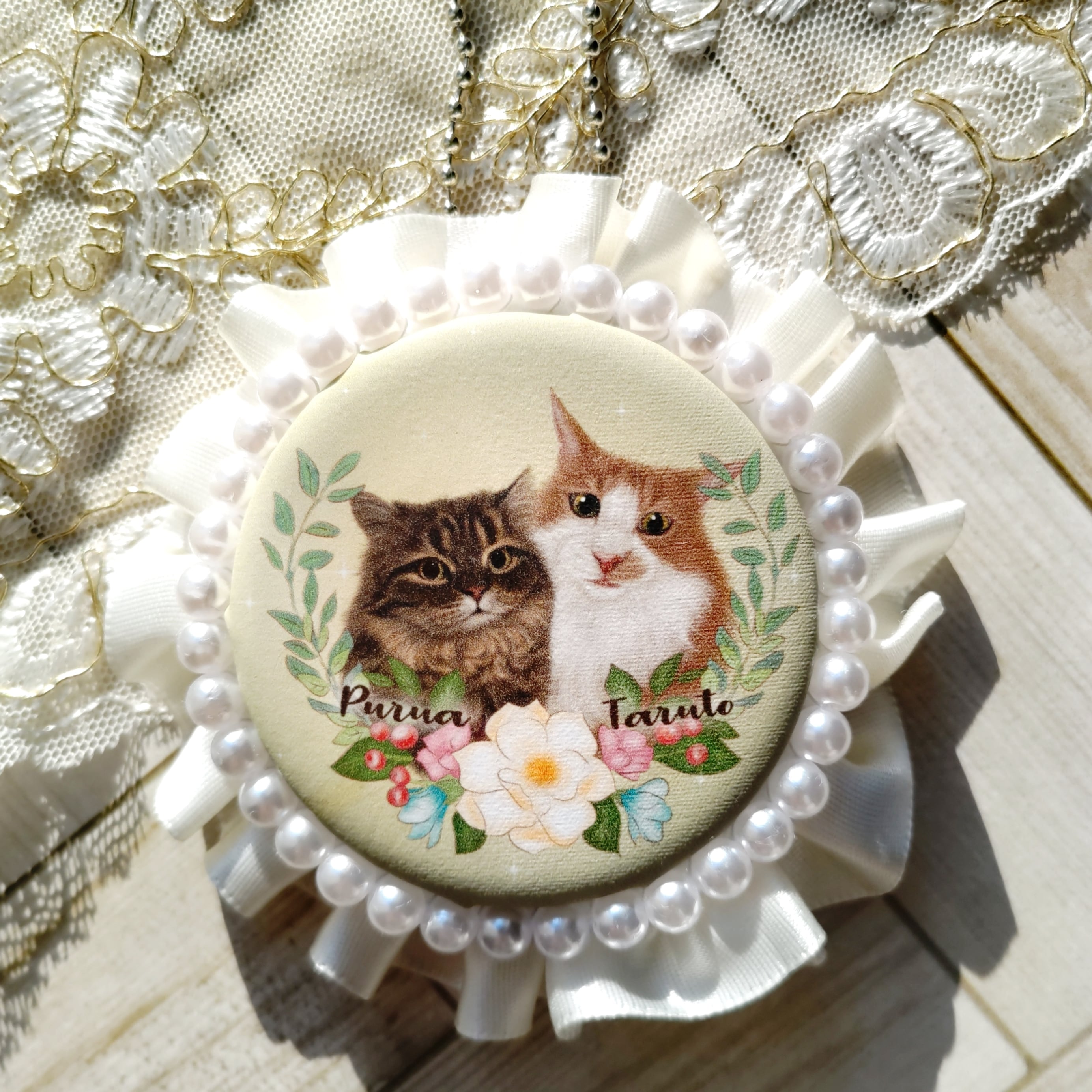 うちの子似顔絵ロゼットキーホルダー/ペット似顔絵